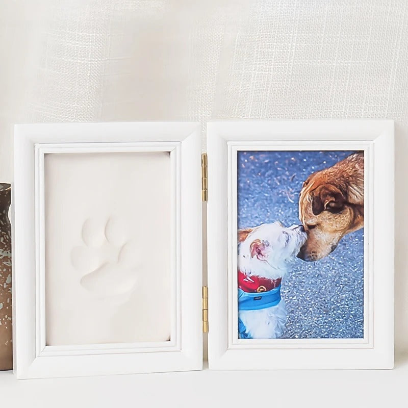 🐾 Fotorahmen mit Pfotenabdruck-Set – Andenken für Hunde & Katzen